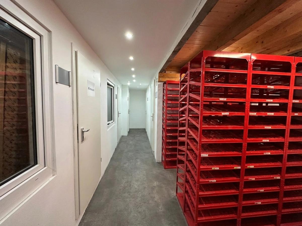 Die Halle ist derzeit noch vom aktuellen Mieter beräumt. Um die Fläche übersichtlich darzustellen, wurden die gezeigten Innenansichten teilweise KI-gestützt aufbereitet und zeigen eine aufgeräumte Nutzungssituation.